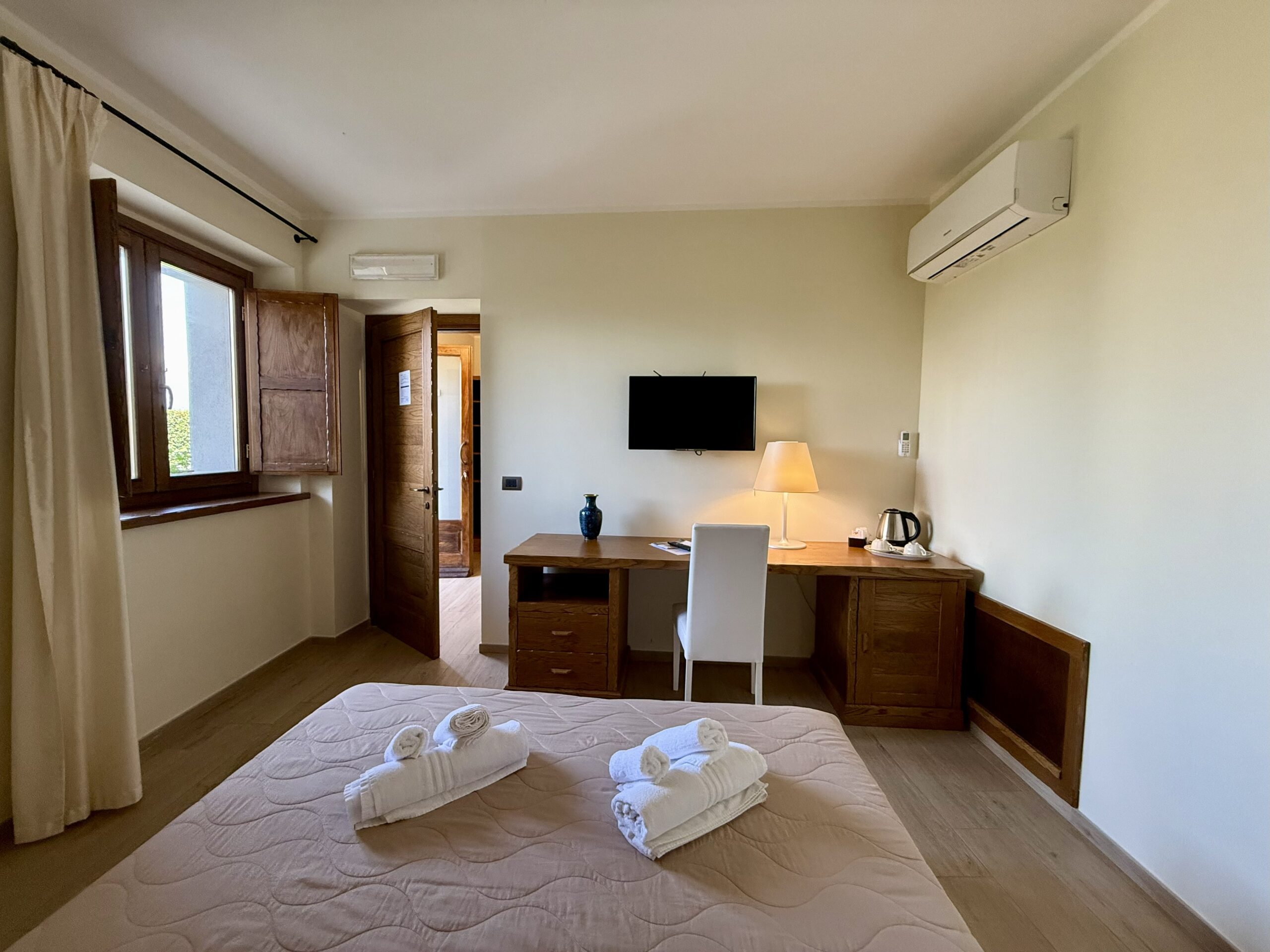 La camera è caratterizzata da un ingresso indipendente, che permette agli ospiti di godere di maggiore autonomia e privacy durante il soggiorno. Dalla stanza si accede direttamente al giardino, uno spazio tranquillo e riservato da cui si può ammirare la suggestiva valle del Mercure.