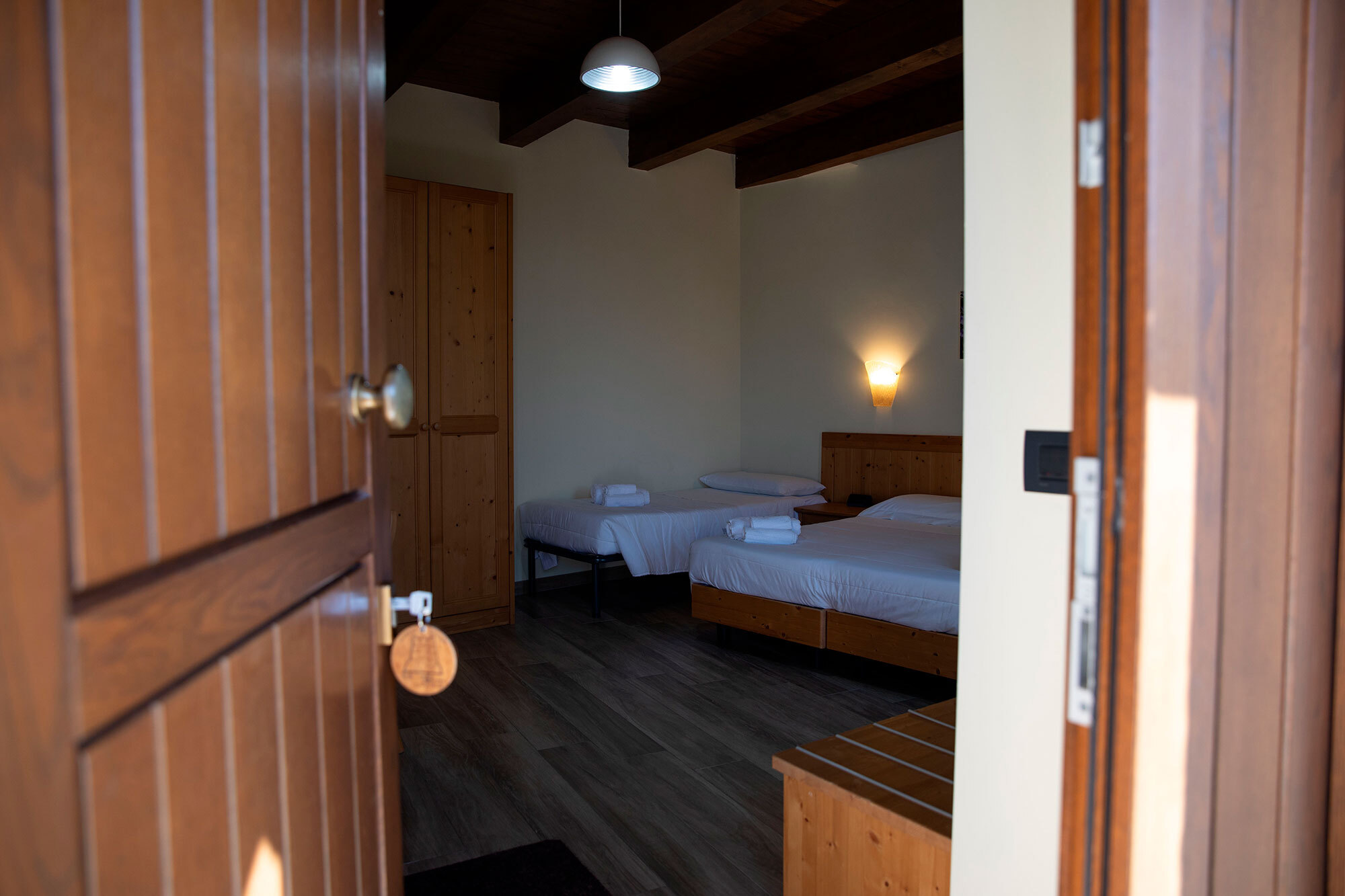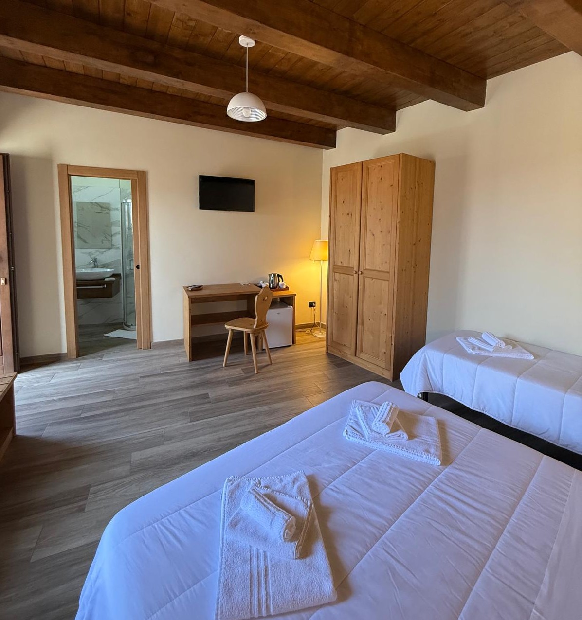 La camera dispone di un letto matrimoniale e due lettini ed è quindi adatta ad accogliere fino a 4 ospiti, risultando ideale per famiglie o piccoli gruppi. Gli spazi, curati e luminosi, conservano l’atmosfera autentica delle case del borgo: ambienti intimi e silenziosi dove il tempo sembra scorrere più lentamente.  Soggiornare a Piazzetta del Rosario significa vivere Rotonda da vicino, tra vicoli, piazzette e scorci che raccontano la storia del paese e del Parco Nazionale del Pollino.