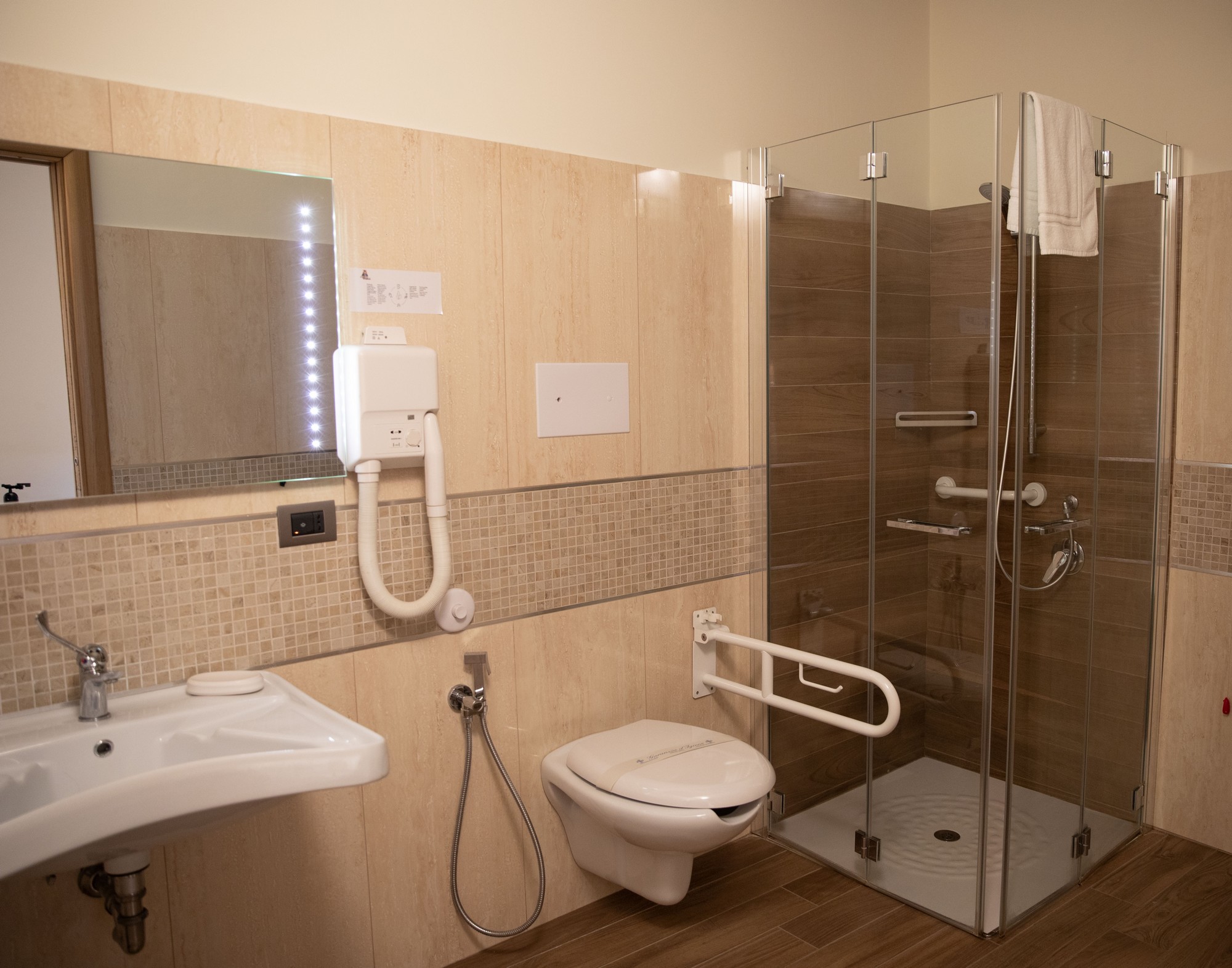 La camera dispone di finestra con luce naturale e bagno privato con doccia (senza bidet). È inoltre l’unica camera della struttura accessibile anche agli ospiti con disabilità, con spazi progettati per garantire maggiore comodità e facilità di accesso.