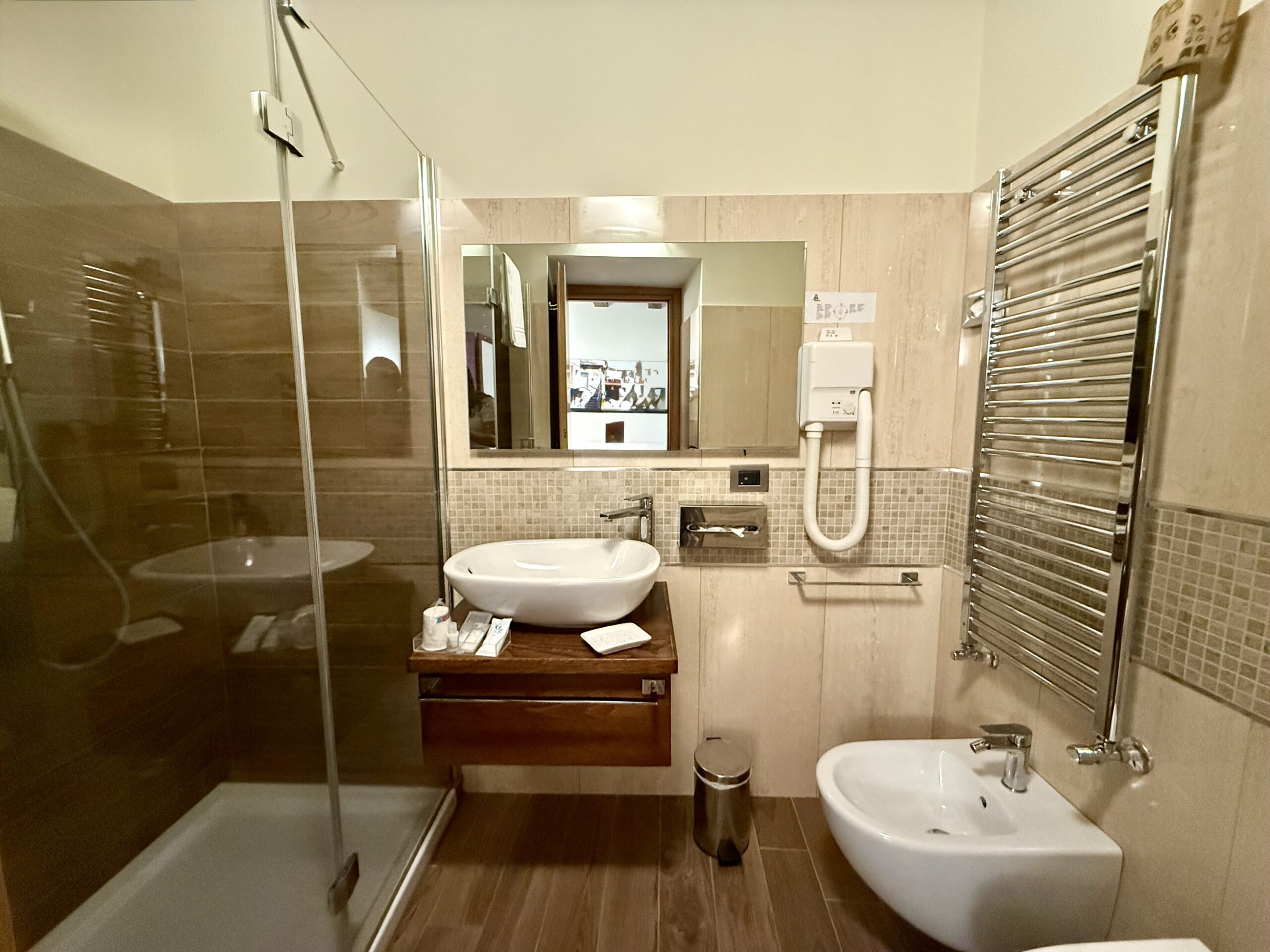 Gli ambienti sono semplici e accoglienti, pensati per offrire tranquillità e funzionalità durante il soggiorno. La camera dispone di finestra con luce naturale e bagno privato con doccia, garantendo privacy e comfort.
