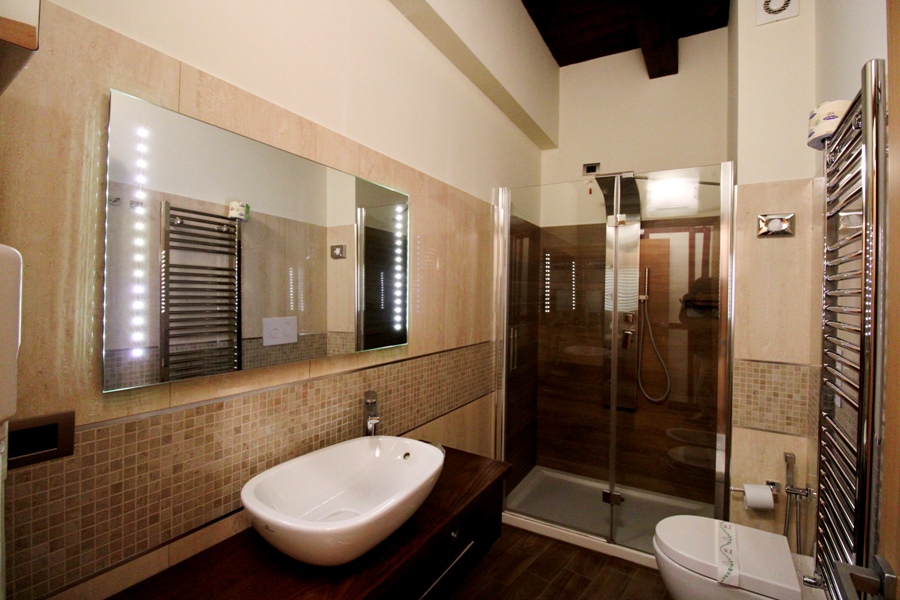 Gli spazi sono semplici e luminosi, pensati per offrire comfort e tranquillità durante il soggiorno. La camera dispone di balcone, che permette di affacciarsi sul borgo e godere della luce naturale, e di bagno privato con doccia, garantendo privacy e comodità agli ospiti.
