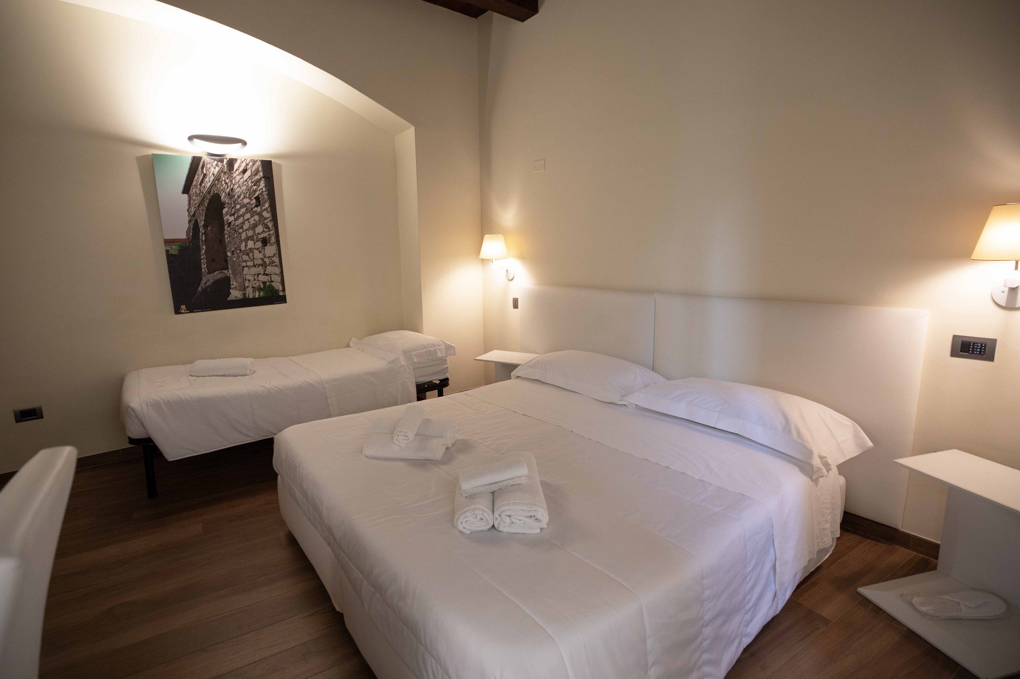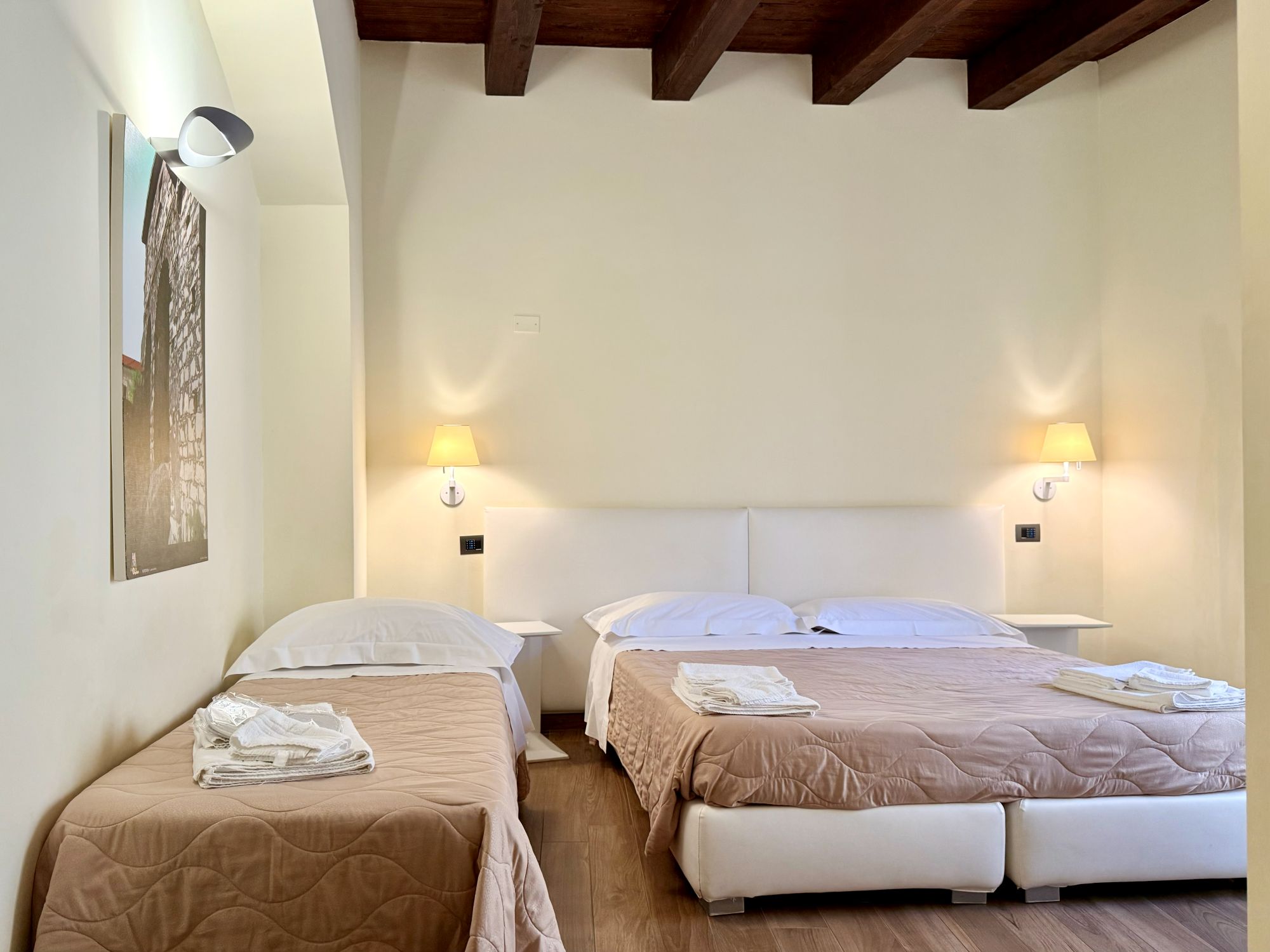 Questa camera è una tripla con balcone, ideale per coloro che desiderano soggiornare insieme in un ambiente accogliente e funzionale nel centro storico di Rotonda, uno dei borghi più suggestivi della Basilicata.