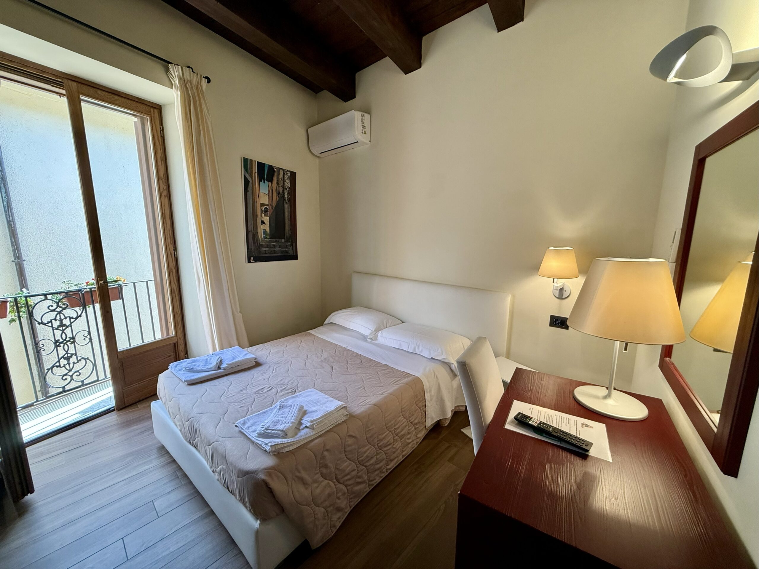 Questa camera è una matrimoniale con letto alla francese da 140 cm, ideale per due persone che desiderano soggiornare in un ambiente accogliente e funzionale nel centro storico di Rotonda, uno dei borghi più suggestivi della Basilicata.