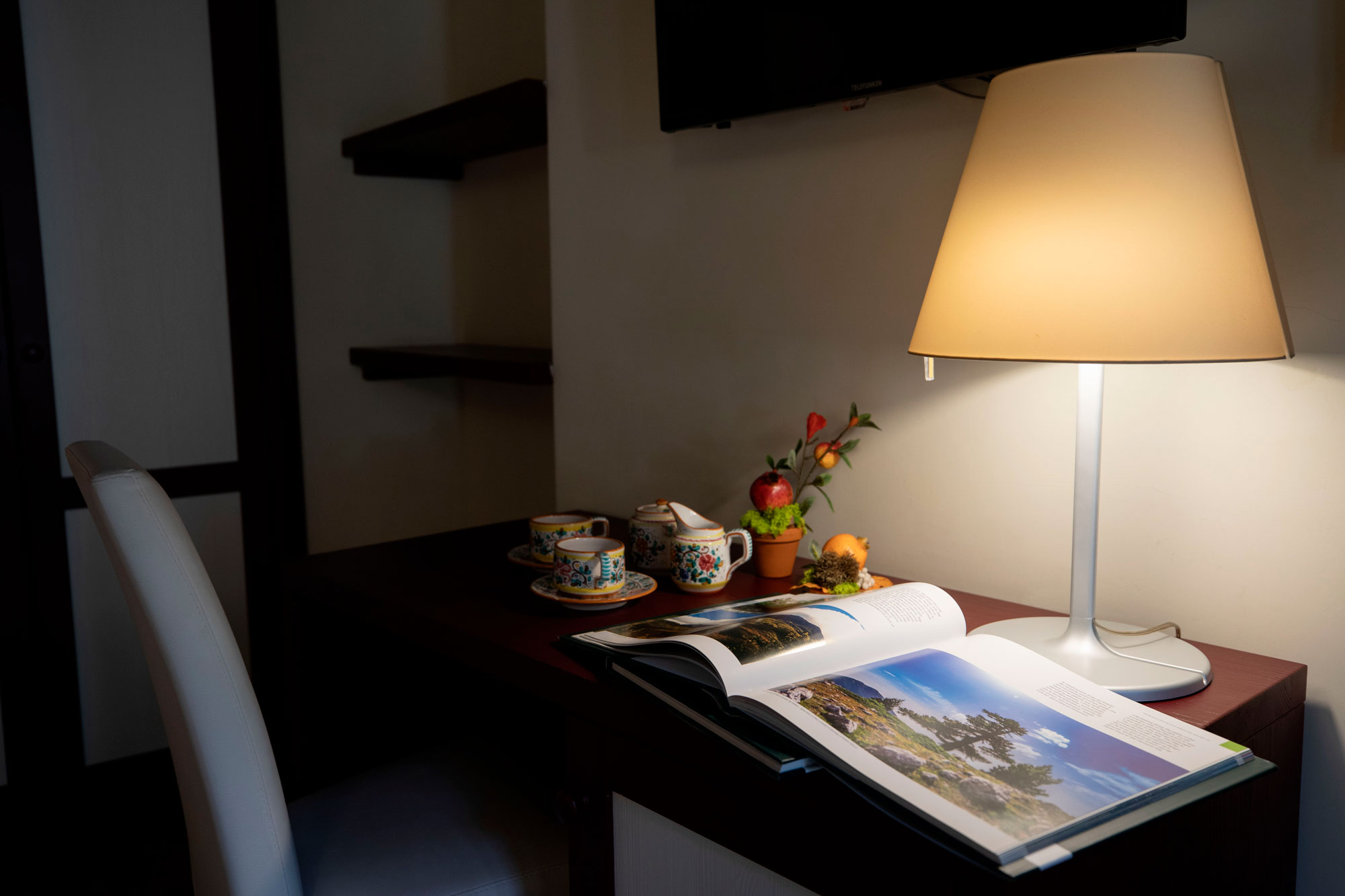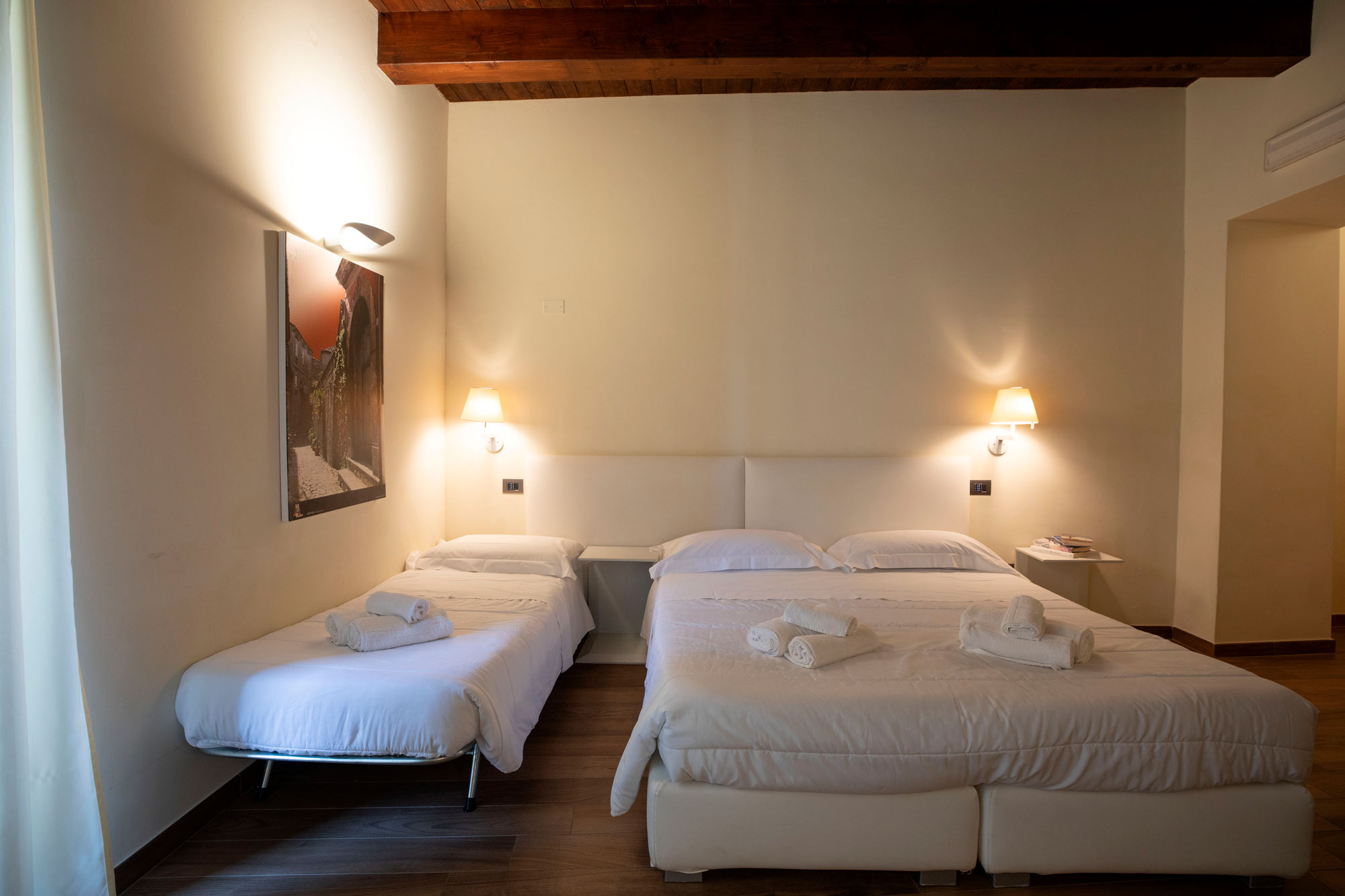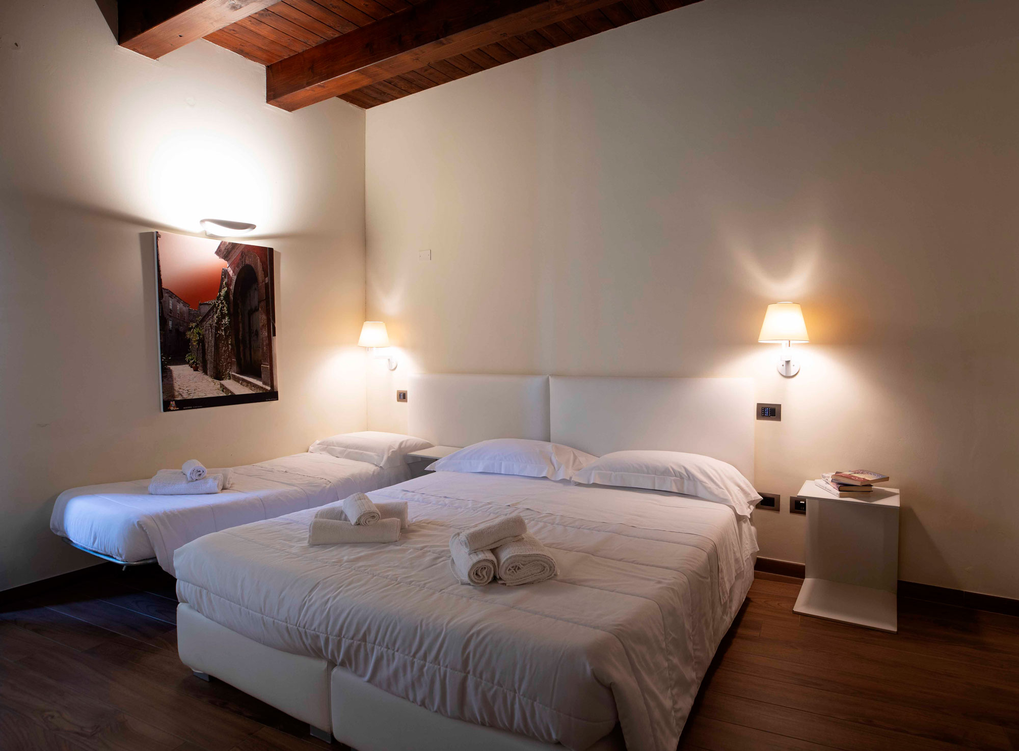 La Camera Frustere (103) si trova nel piccolo hotel Sant’Anna, una delle strutture che fanno parte del Borgo Ospitale di Rotonda, nel cuore del centro storico e ai piedi del Parco Nazionale del Pollino.