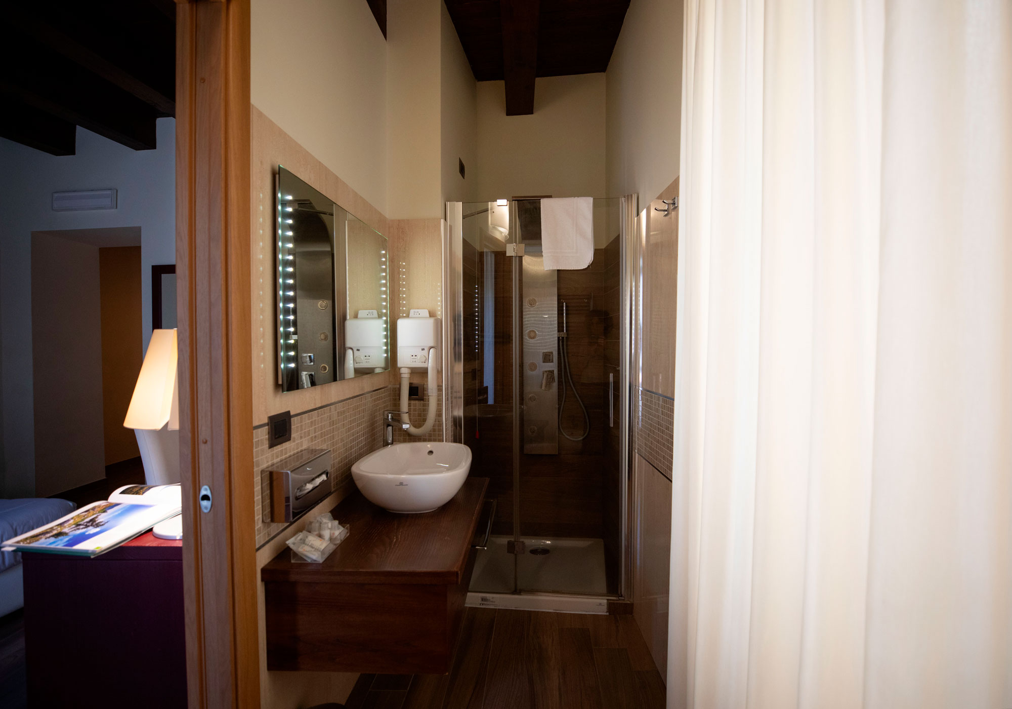 Gli spazi sono semplici e funzionali, pensati per garantire tranquillità e praticità durante il soggiorno. La camera dispone di balcone, che permette di affacciarsi sul borgo e godere della luce naturale, e di bagno privato con doccia, assicurando comfort e privacy agli ospiti.